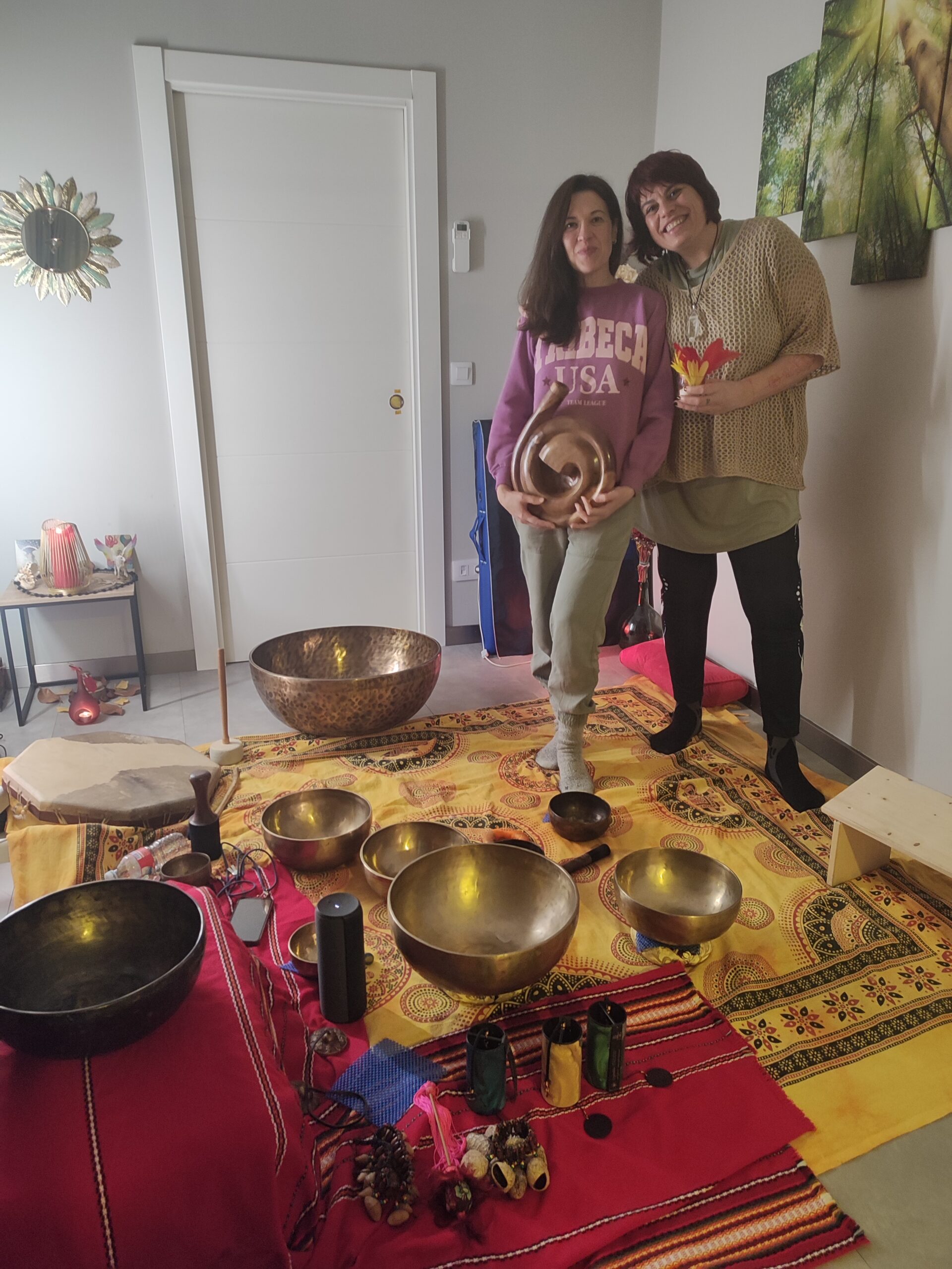 Tu caracola nos transporto a otra dimensión, el tambor nos dio tierra y conexión con nuestro corazoncito,la meditación con los cuencos tibetanos fue muy muy bonita y lo más brutal e impresionante fue meternos dentro del gran cuenco y sentir si alta frecuencia,eso me requete encanto,yo gasto un 43 de pie y sobraba espacio,asique imaginar el tamaño del cuenco y de la vibración..por ello repetimos llamado.